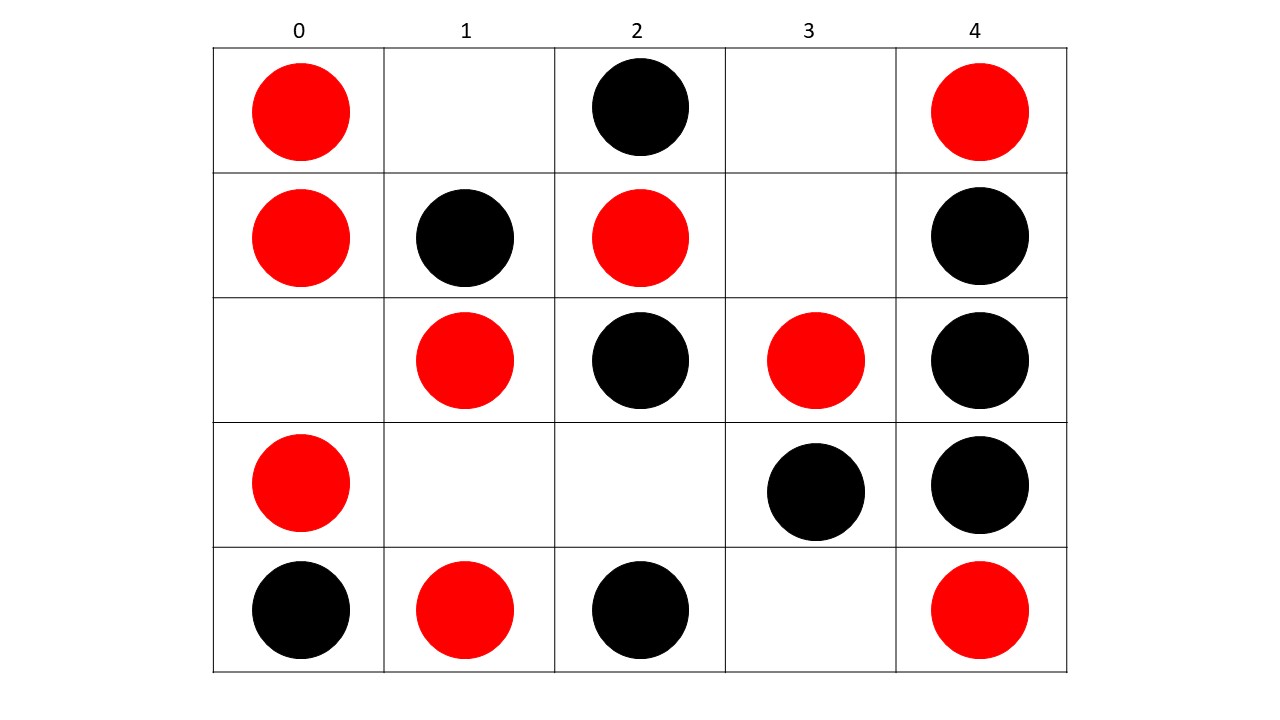 Write the columnWithMostOfColor method. The method should return the column index that has the most pieces of color color. If there are multiple columns with the same highest count, either column index can be returned.