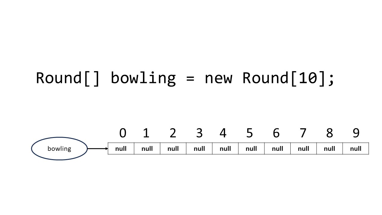 To solve this, we could use a series of variables. Suppose Round is a class to hold the values in each round of the bowling game: