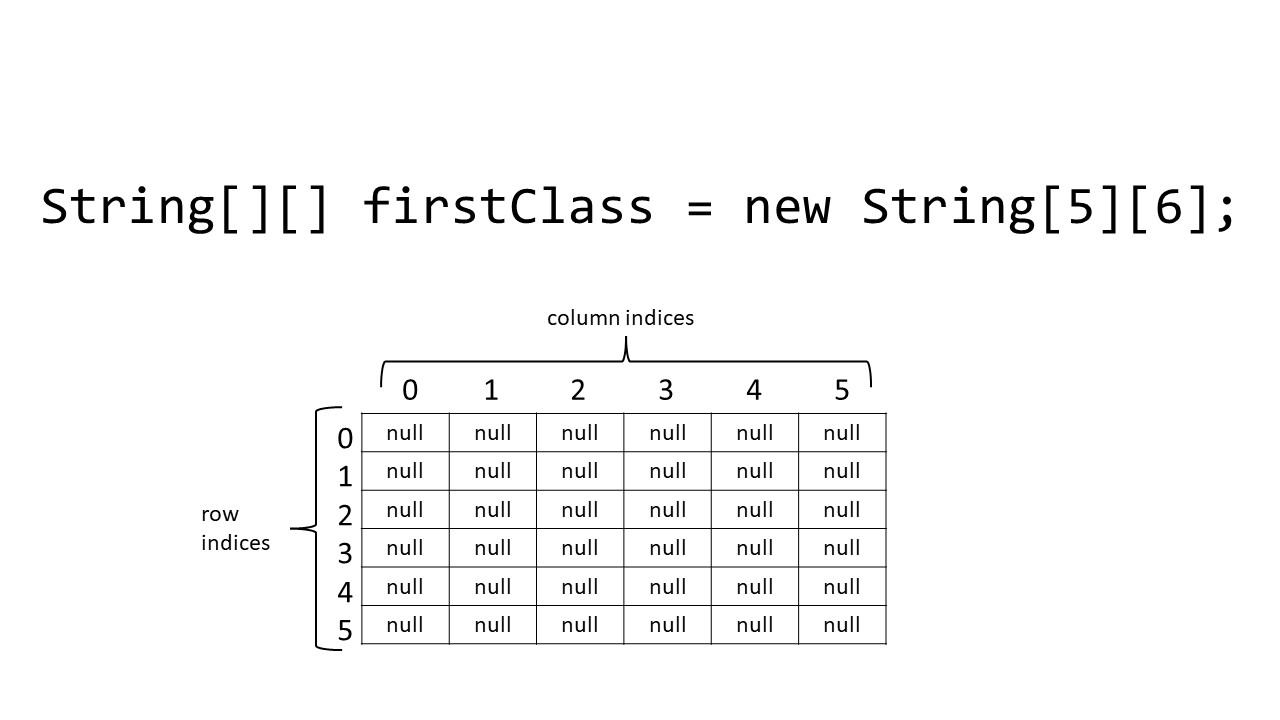 When constructing a 2D array object, we must specify the type of data that is stored. A 2D array can store either primitive or reference data.