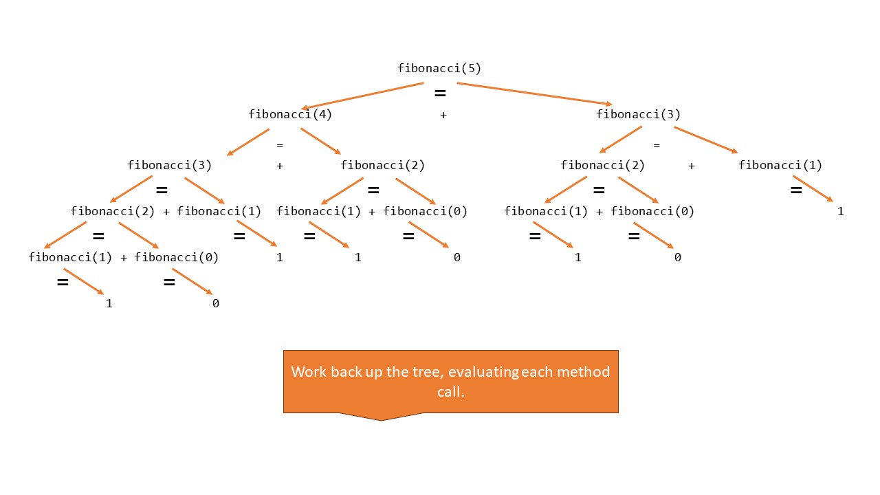 The call fibonacci(5) returns 5.